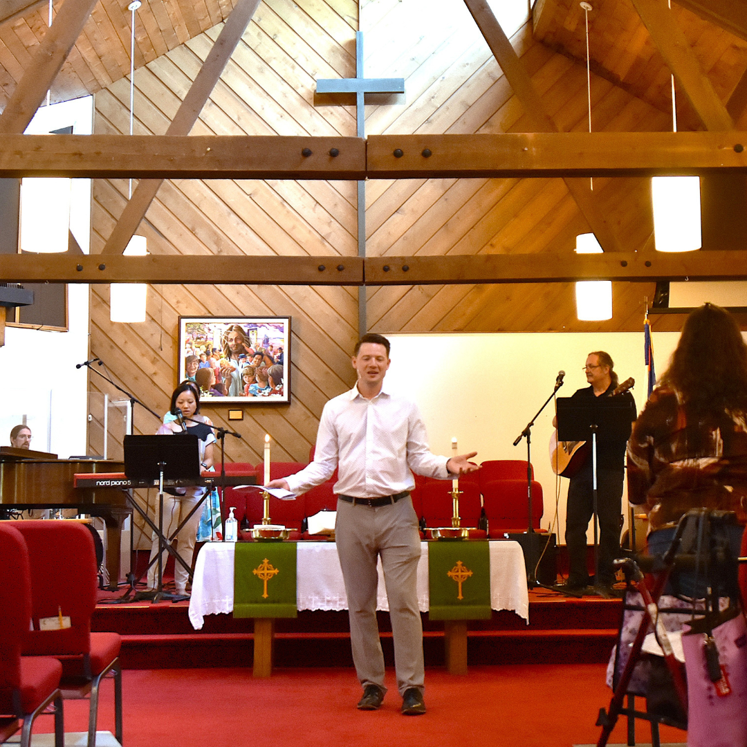 Our worship services help us encounter God through music, scripture, media, prayer, and the spoken word. Led by a talented worship team featuring guitars, drums, and piano, we lift our voices in songs and hymns that express gratitude, praise, and the profound truths of our faith.